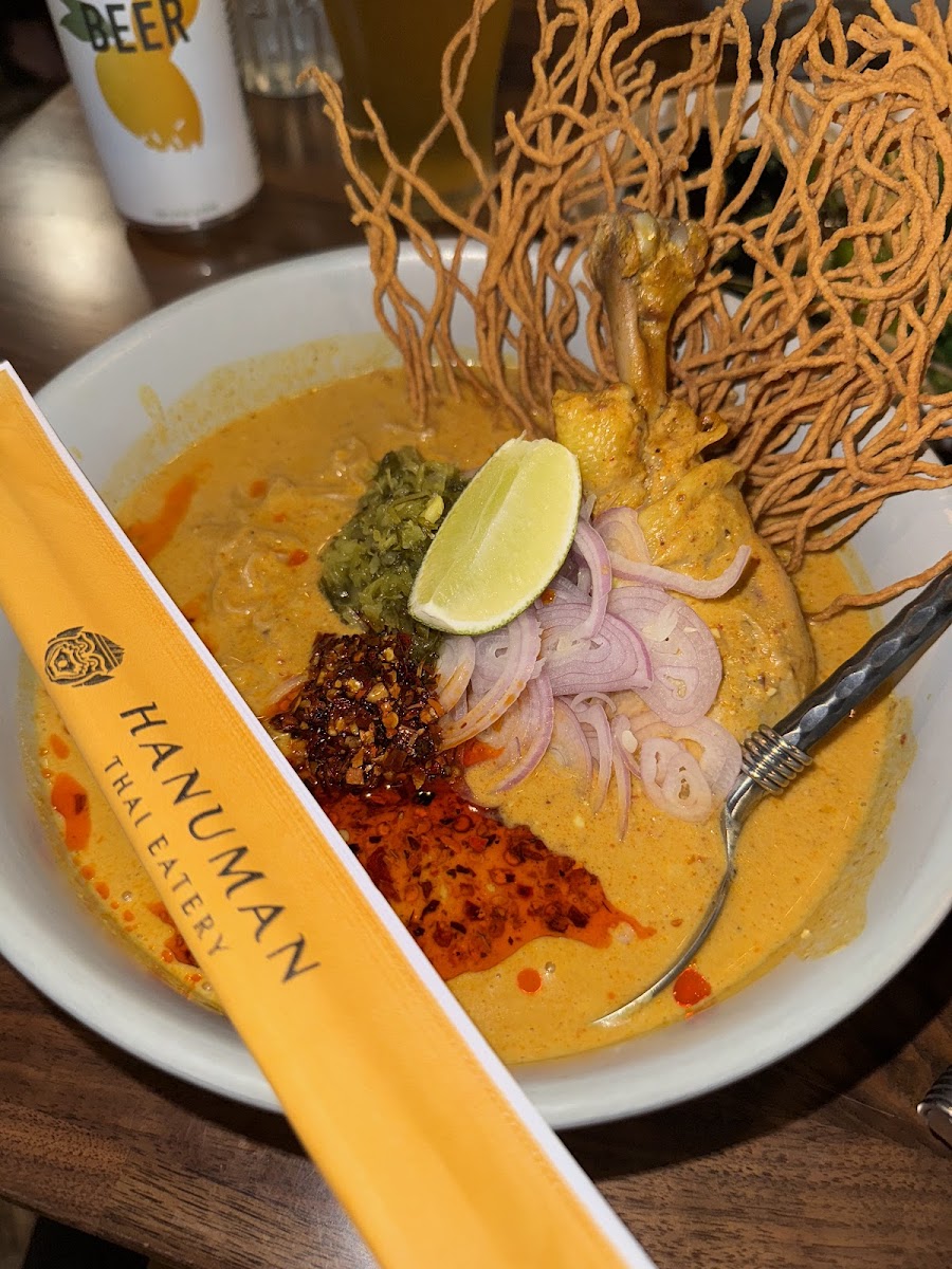 The menu at Hanuman Thai Eatery On Newport is a delightful exploration of Thai flavors. Signature dishes like the Khao Soi-a rich, coconut curry noodle soup-immediately capture your attention with its aromatic spices and tender chicken. For a more hands-on experience, the Chicken Wings with Sticky Rice are a must-try, offering a satisfying combination of crispy, savory wings paired with soft, comforting rice. Vegetarian diners won’t miss out either, thanks to the Tofu Pad See EW, where perfectly stir-fried noodles meet fresh, vibrant vegetables in a savory sauce. Hanuman’s Fried Rice is another standout, bursting with flavor and cooked to perfection, while seasonal favorites like Mango Sticky Rice add a sweet, refreshing finish to any meal.